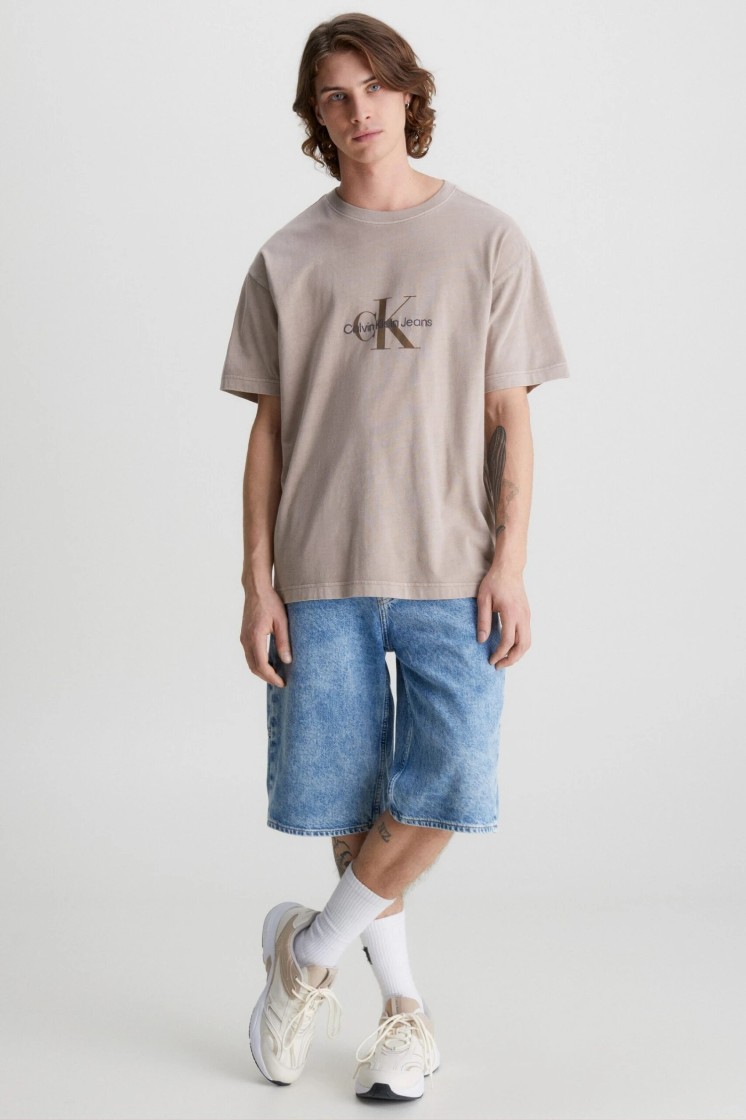 Calvin Klein Jeans Mineralgefärbtes T-Shirt Mit Monologo, Braun