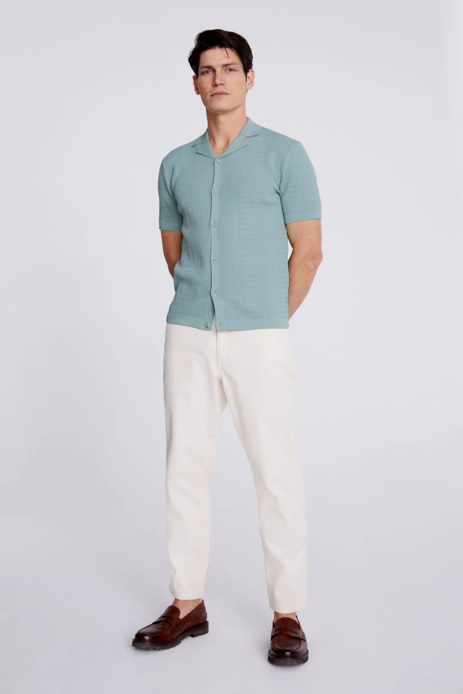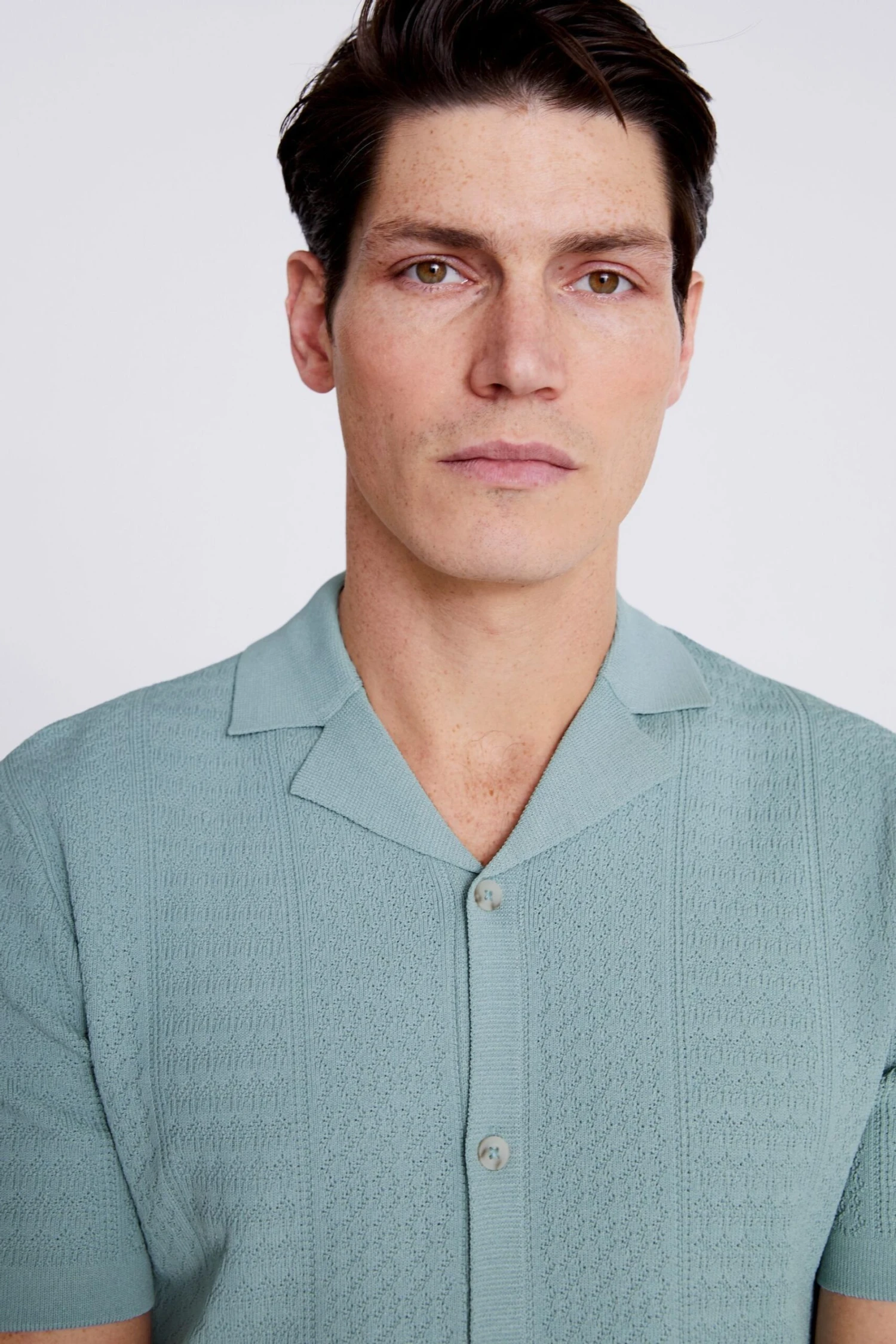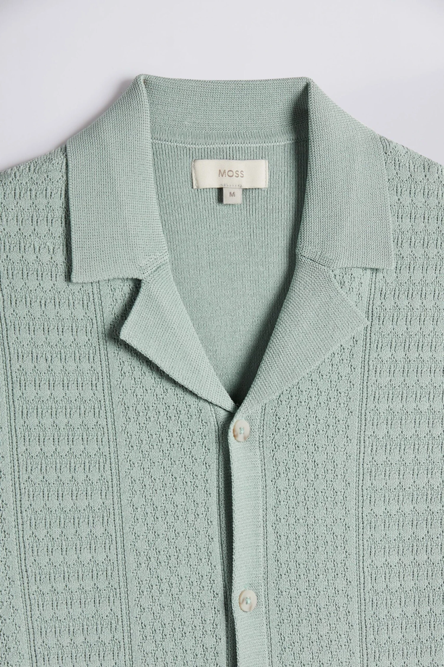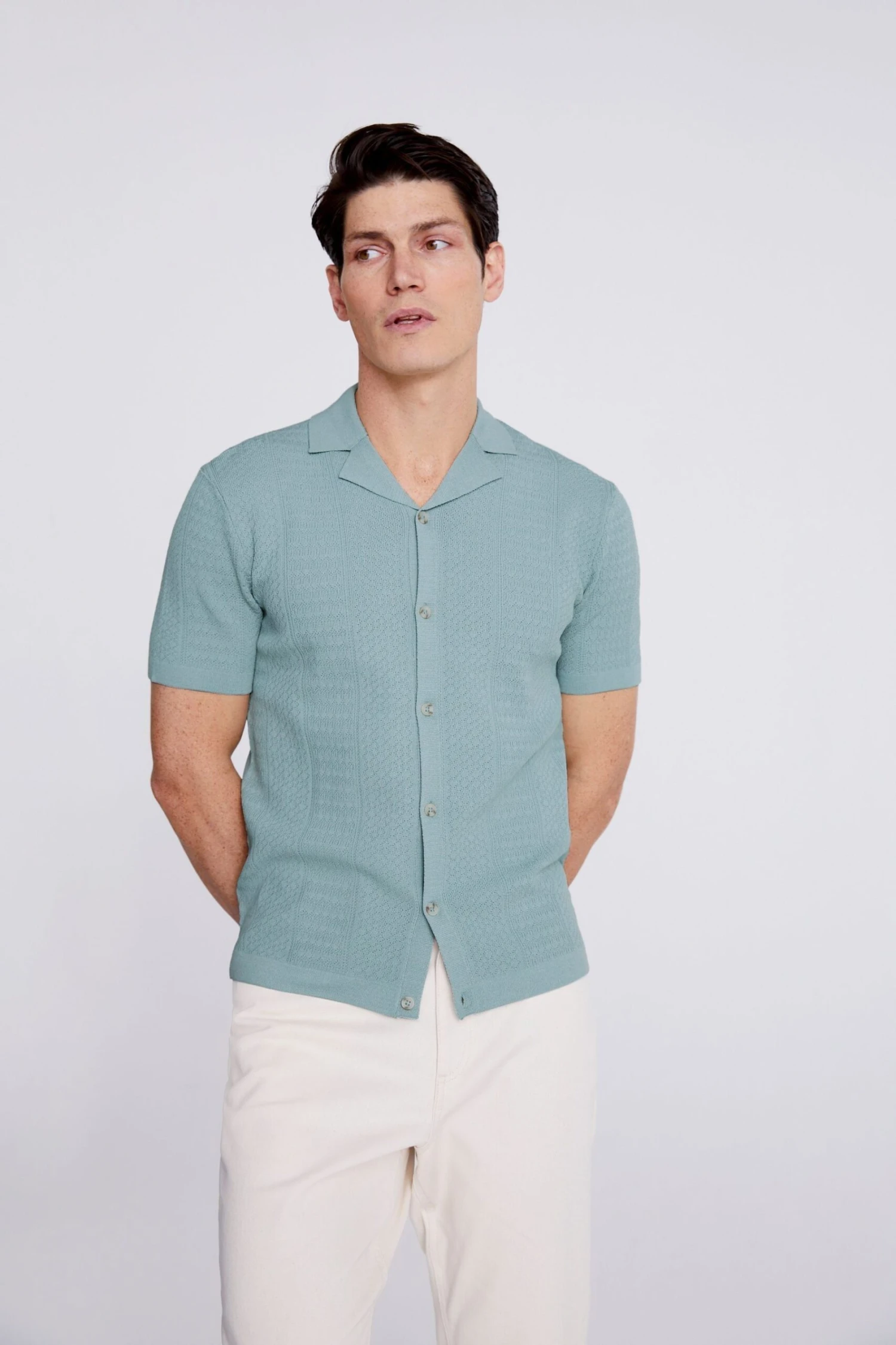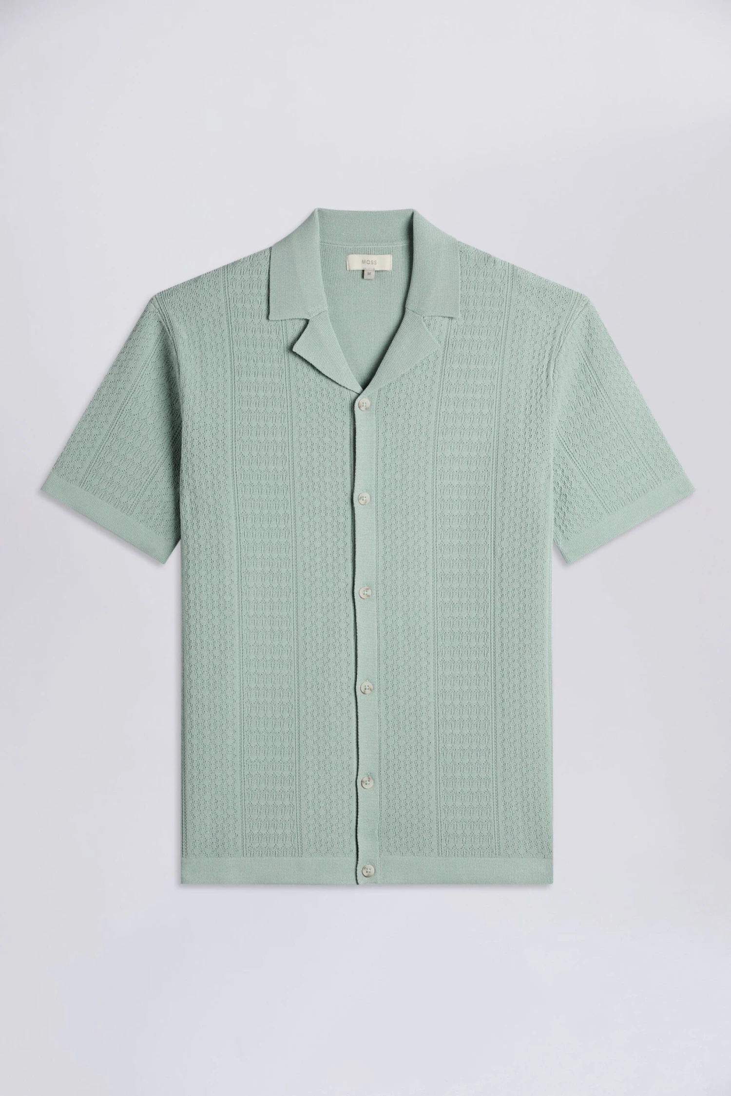Moss Kurzärmeliges Strickhemd, Salbeigrün