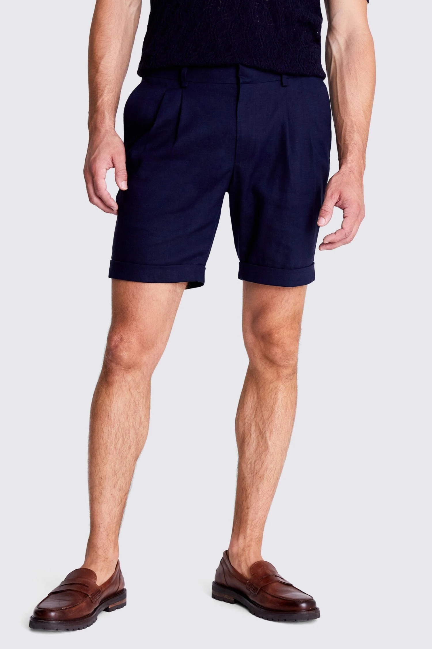 MOSS Navy Blue Linen Causal Short