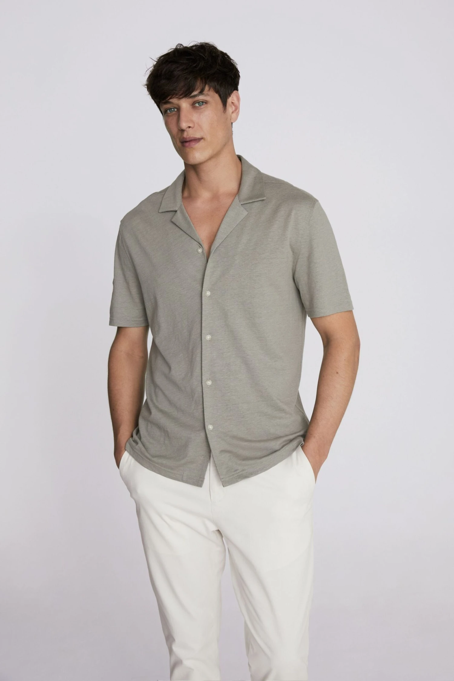Moss Strickhemd Mit Kubanischem Kragen, Salbeigrün