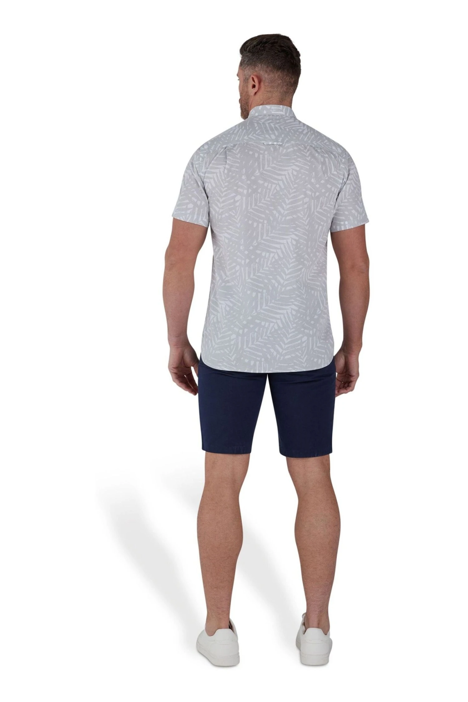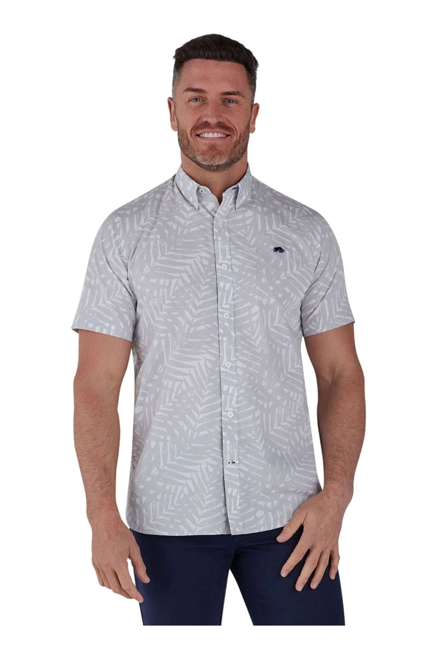 Raging Bull Kurzärmeliges Popelinehemd Mit Palmen-Print, Grau