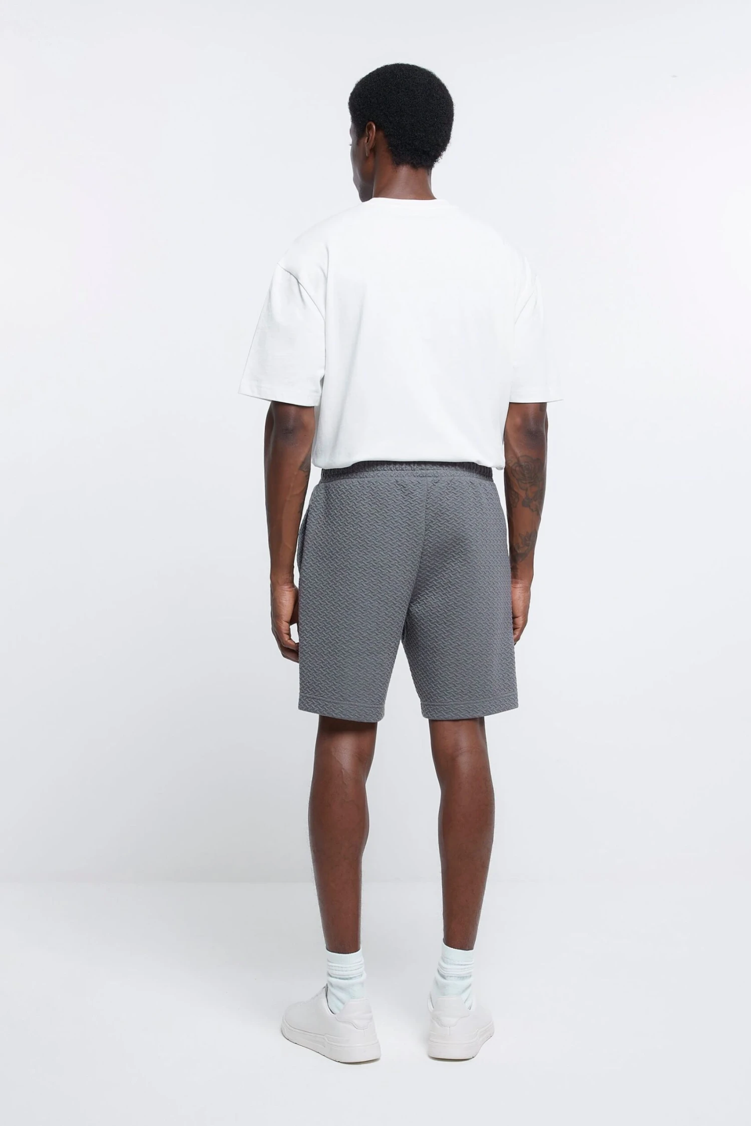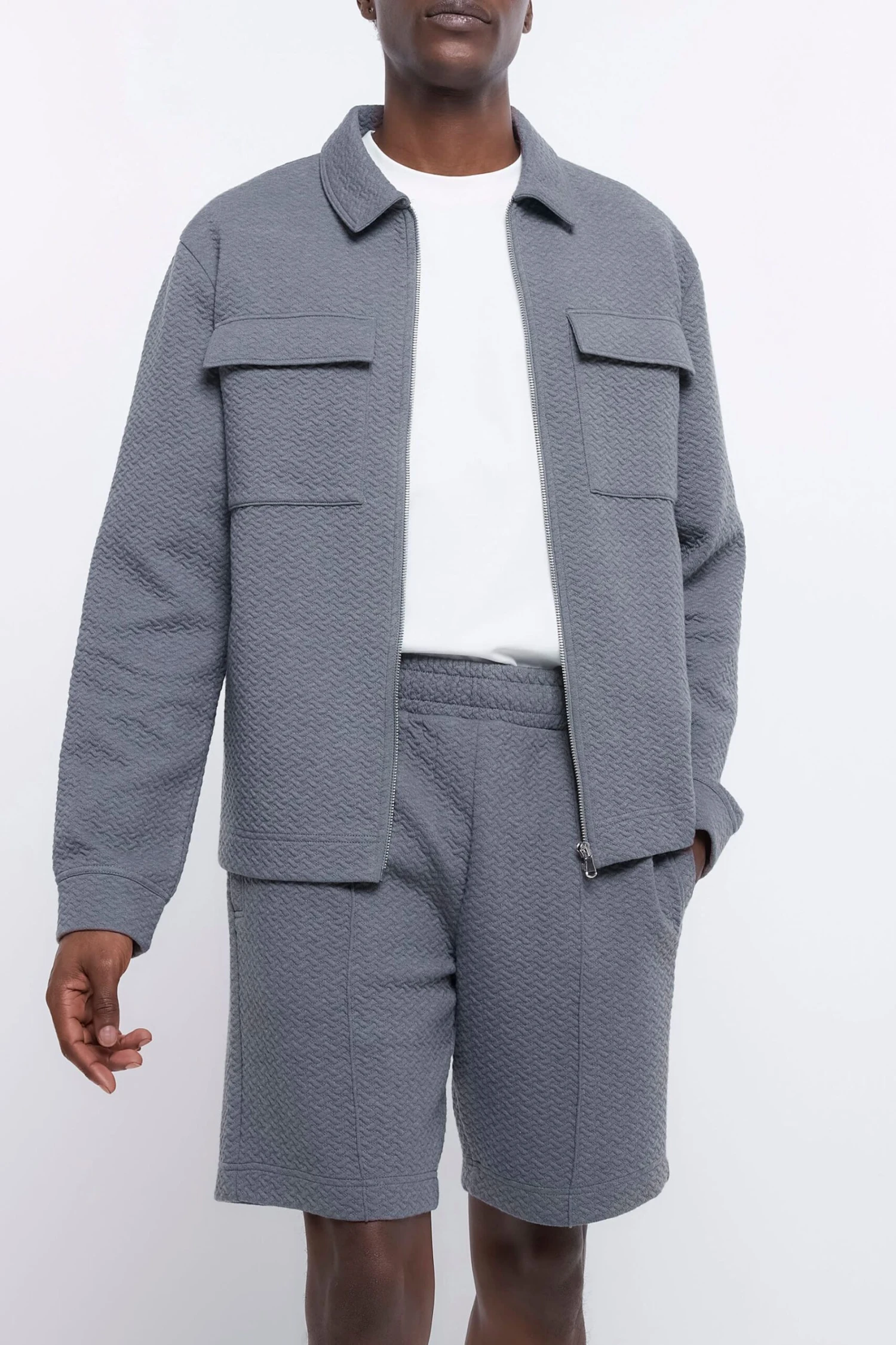 River Island Strukturierte Shorts In Slim Fit, Dunkelgrau