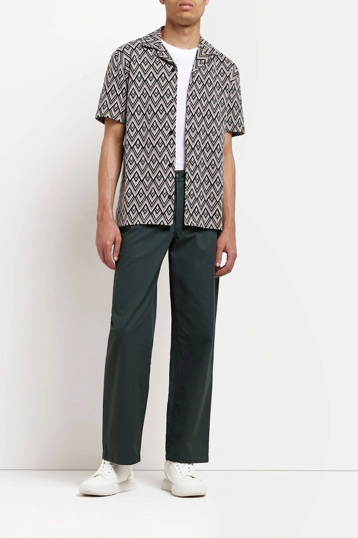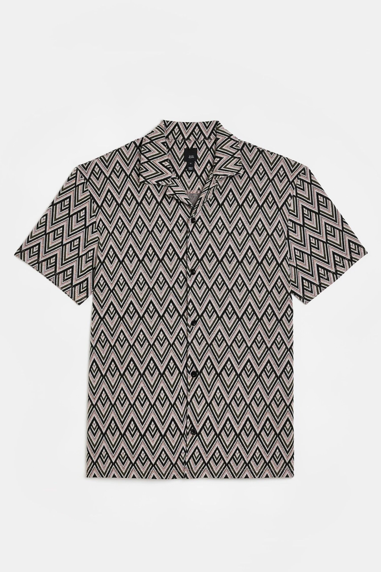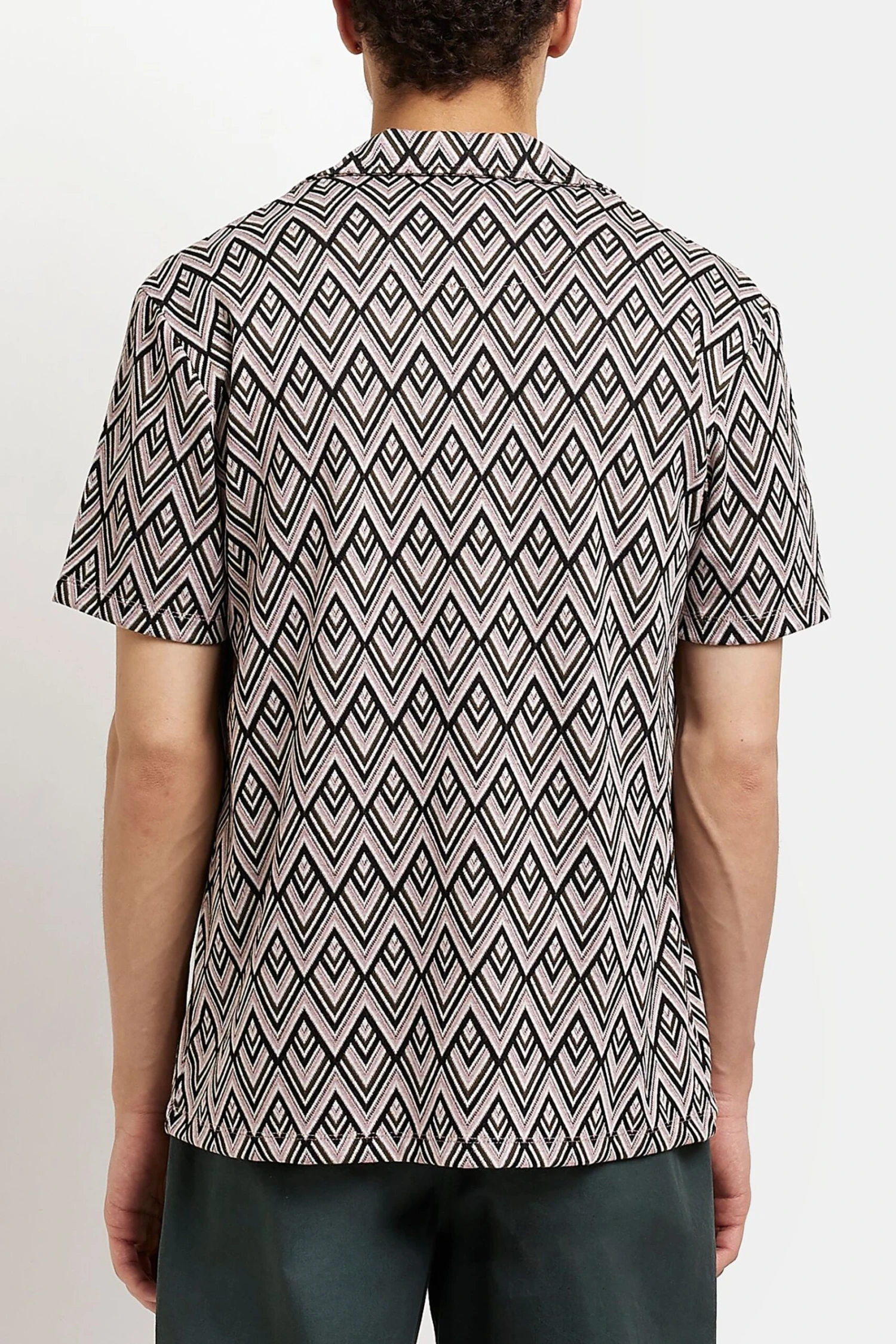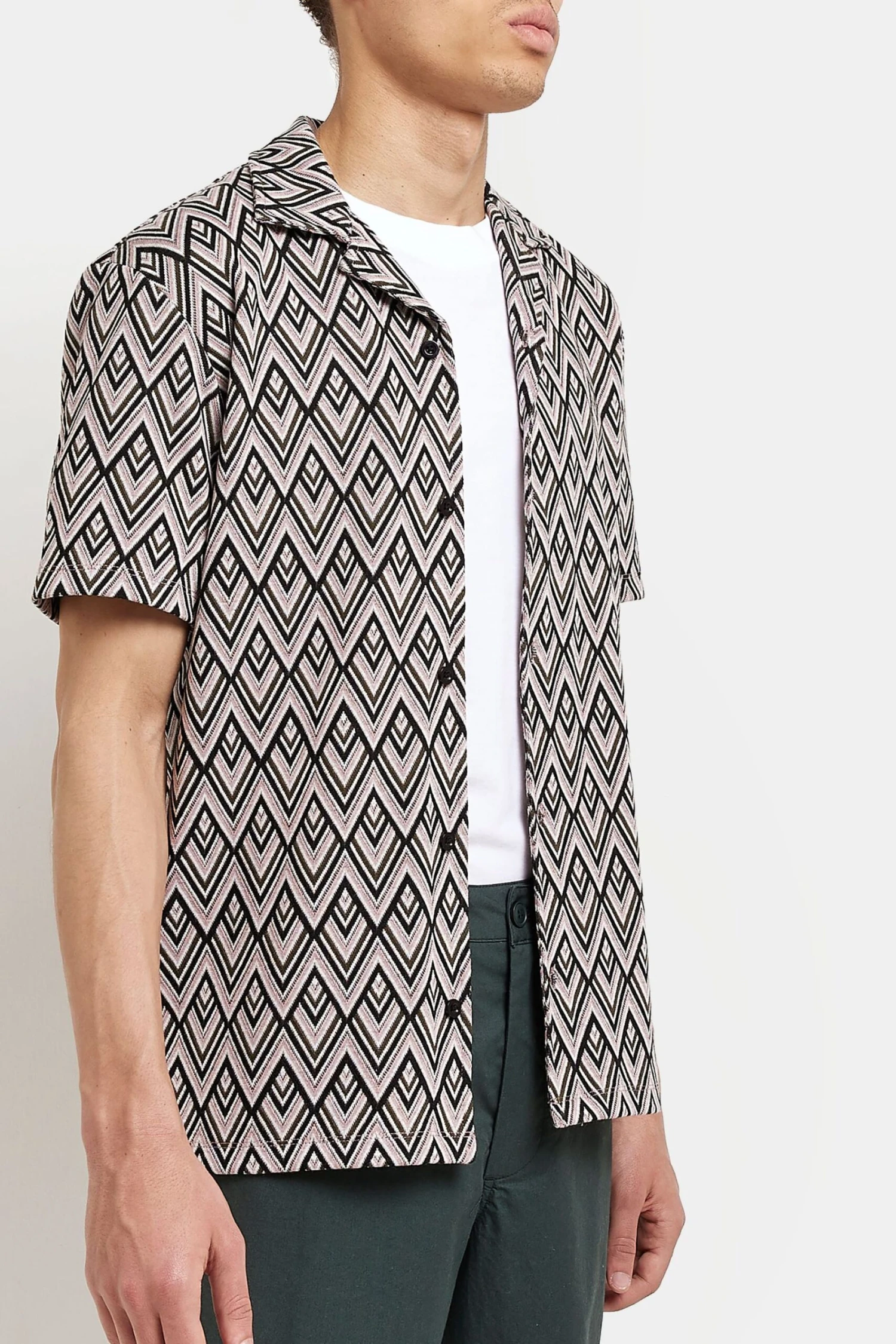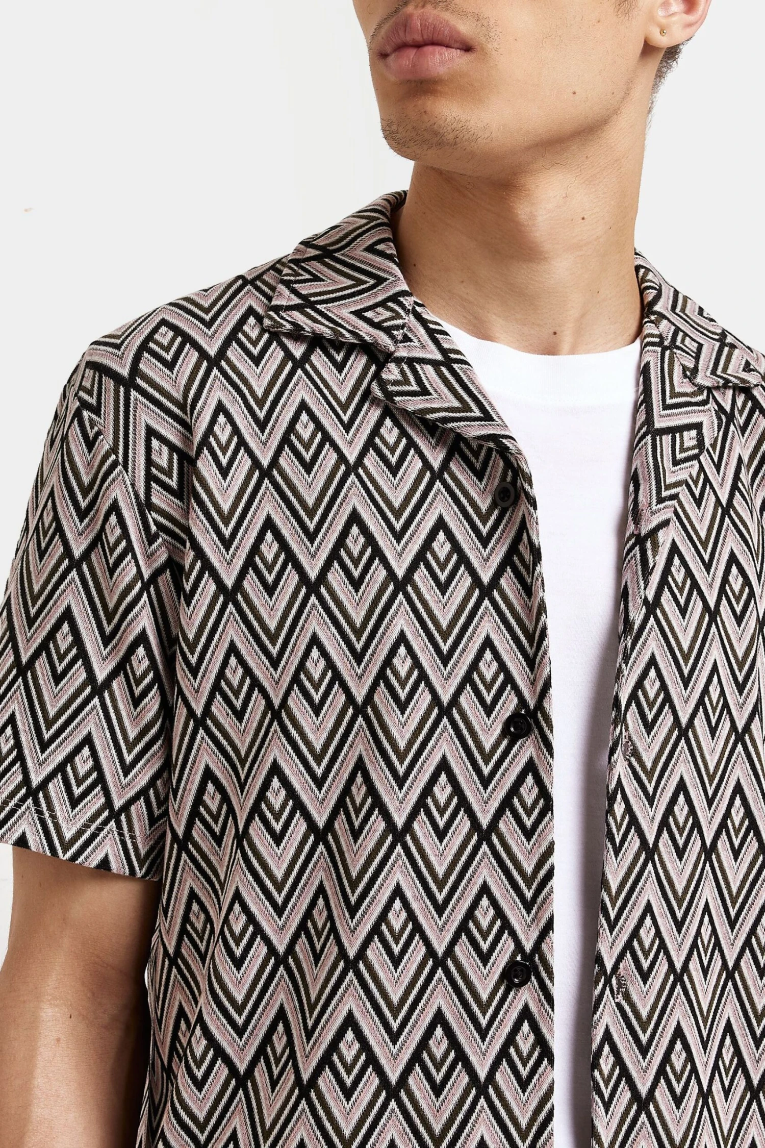 River Island T-Shirt Mit Jacquardmuster, Reverskragen Und Knopfleiste, Mittelpink